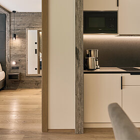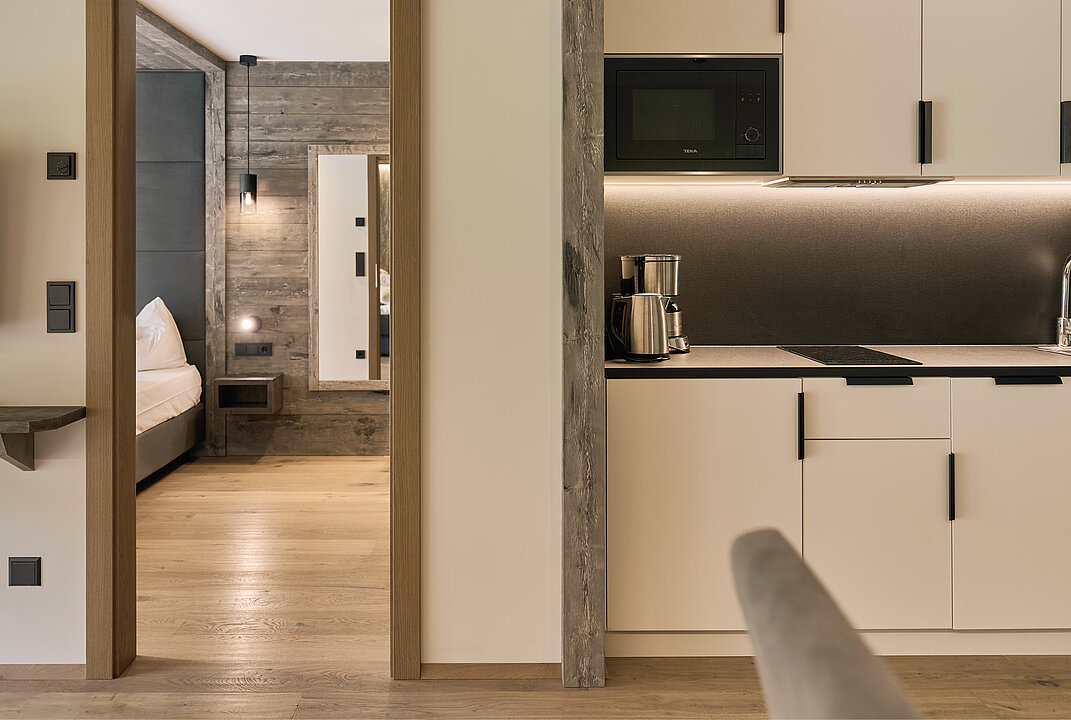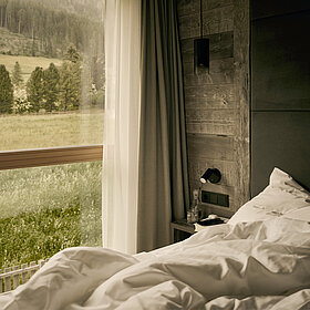 Nach draußen der schöne Blick in den Wald, das gemütliche Holz innen. Dieses Ferienapartment bietet entspannten Rückzug für die feine Auszeit. Mit voll ausgestatteter Küche, Wohnbereich, großem Bad und einer privaten Loggia zum Frischluft-Tanken!