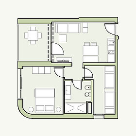 Typ 1 mit zwei getrennten Schlafzimmern,
